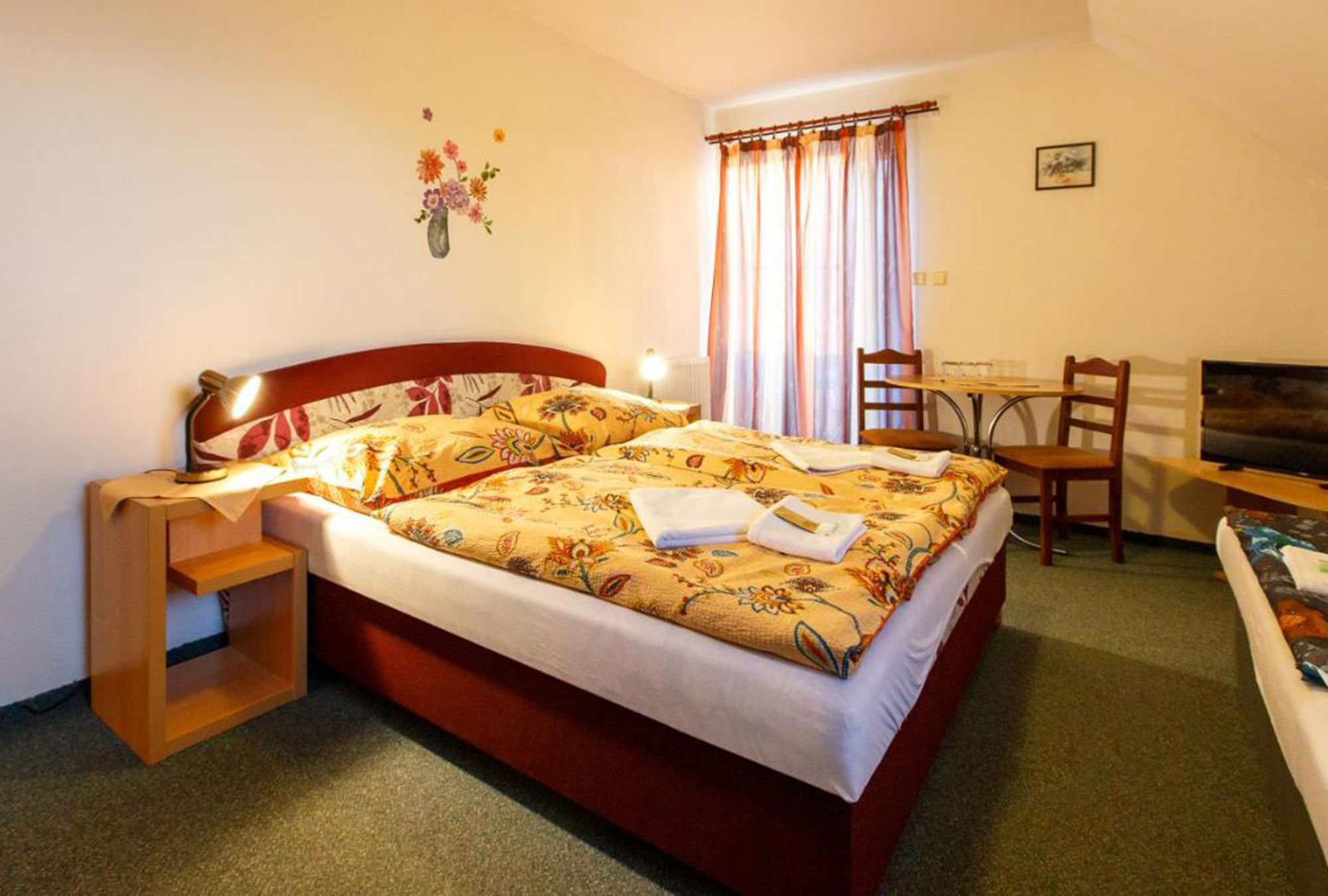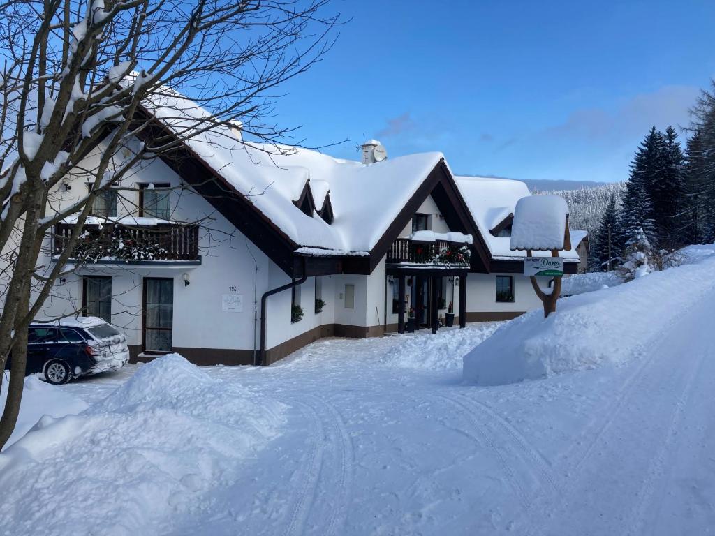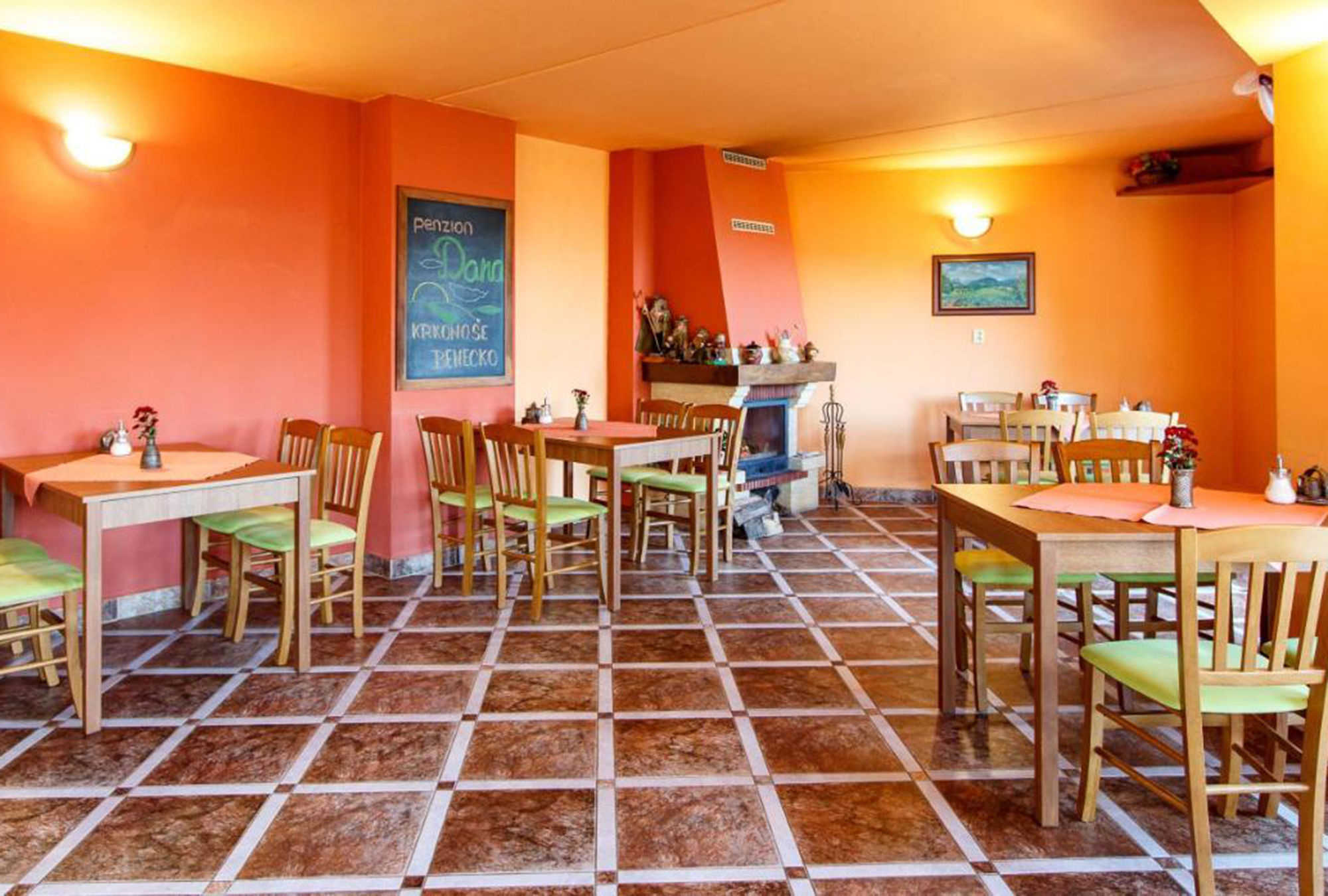 Die Penzion Dana mit eigenem Parkplatz bietet ihren Gästen Mahlzeiten im eigenen Restaurant (Hausmannskost), für Erfrischungen gibt es eine Außenterrasse mit der Möglichkeit zum Grillen das ganze Jahr über. Der untere Teil der Pension dient der Entspannung, wo sich ein Schwimmbad mit Außenwand und eine Sauna befinden.