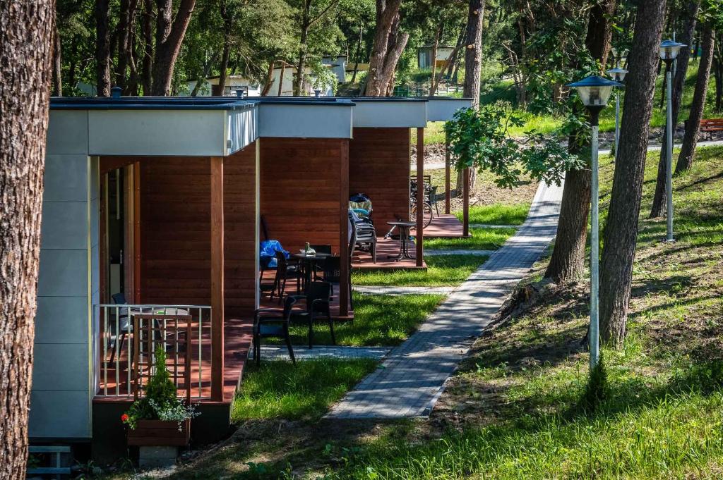 Das Hotel liegt auf der sogenannten Visselká-Nehrung und bietet wunderschöne Natur und interessante Naturdenkmäler, darunter Europas höchste Düne (Kamelbuckel) und das Schutzgebiet „Buki Mierzei Wiślanej“. Das Hotel liegt in einem großen Waldgebiet, nur 200 m vom Sandstrand entfernt.