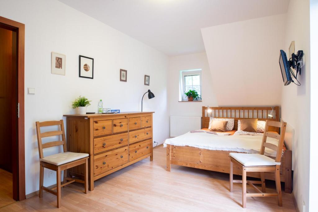 Das komplett neu renovierte, stilvolle Hotel ŠVÝCARSKÁ BOUDA bietet seinen Gästen Mahlzeiten in einem Restaurant mit Bar und Billard, einer Terrasse mit herrlicher Aussicht im Sommer, einer Rezeption mit Einzelhandelsverkauf, einer Sauna, einem Whirlpool und einem Außenpool. Der Parkplatz befindet sich direkt neben dem Hotel, mehrere überdachte Parkplätze stehen ebenfalls zur Verfügung. Das Hotel verfügt außerdem über einen eigenen Skibus, der Sie in die Skigebiete Svatý Petr und Medvědín bringt. Im Winter werden Winterketten empfohlen.