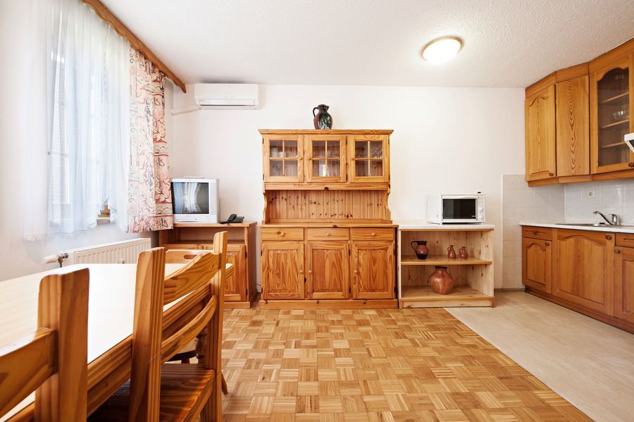 There are air-conditioned apartments for 2 to 3 people, offering ideal freedom and comfort for those who prefer to stay in high-quality (4*) cottage-style apartments over a hotel. For complete comfort, you will find a modern bathroom with shower, toilet and hairdryer, a double bedroom on an open gallery, a living room with the possibility of an extra bed, or you can relax on the terrace overlooking the Prekmurje plains.