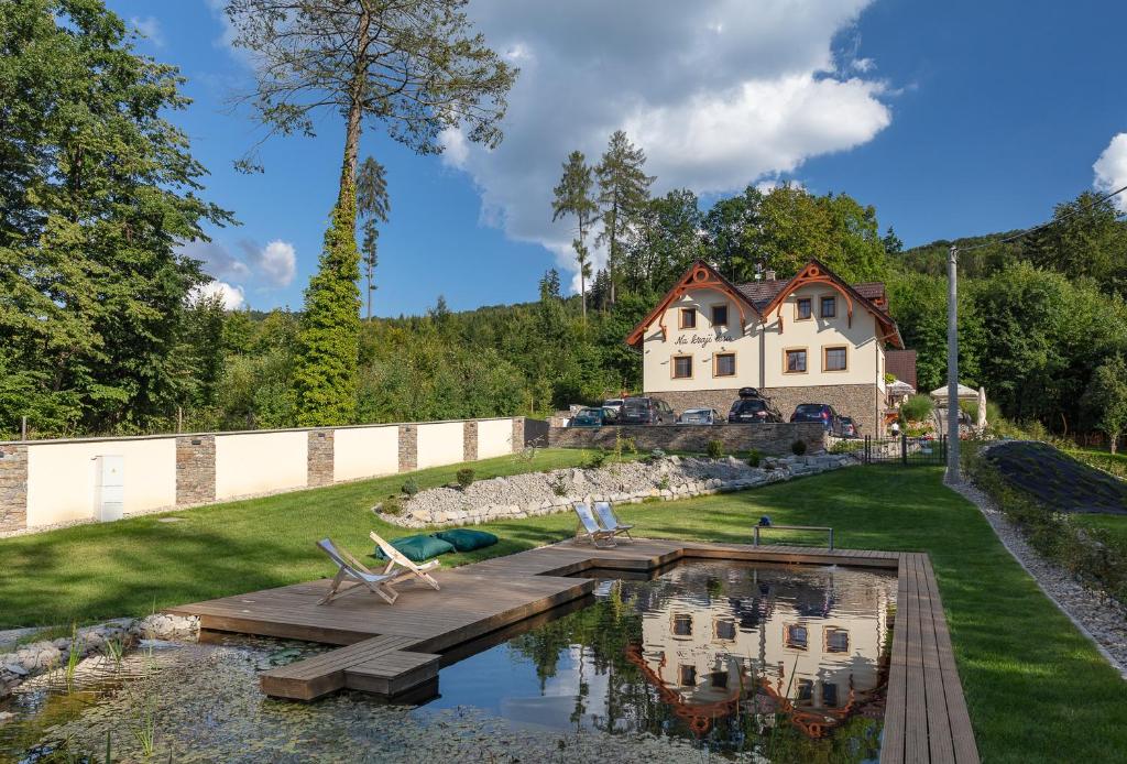 Całkowita pojemność pensjonatu to 23 osoby + 2 dostawki. Na parterze znajdują się dwa przestronne pokoje dwuosobowe z dużymi łazienkami. Na piętrze znajduje się jeden pokój dwuosobowy oraz dwa kolejne apartamenty dla 4 osób i jeden duży apartament z aneksem kuchennym i możliwością dostawki dla 2 osób. Apartament ślubny posiada osobne wejście z tarasem, dużą łazienkę z wanną i prysznicem oraz osobną toaletę.