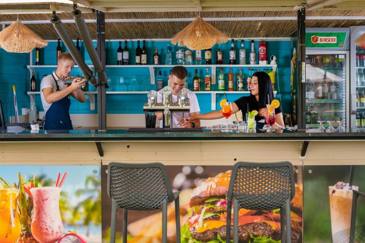 Holiday Resorts nabízí snídani a polopenzi formou bufetu. V restauraci a na terase se podávají jídla maďarské a mezinárodní kuchyně.
