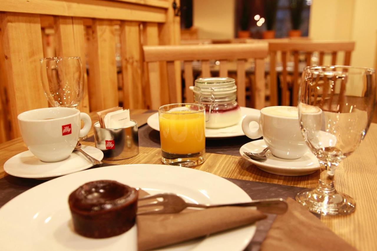 Pension Dvořák nabízí denně snídaně a každý z pokojů má ve snídaňové jídelně vlastní stůl. K dispozici je hostům i místní restaurace s italskou kuchyní.