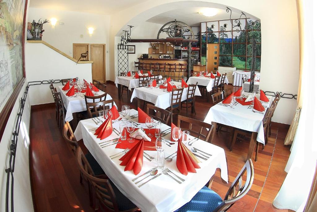 Zámecká restaurace se sestává ze tří na sebe navazujících prostor, reprezentativní Zámecká restaurace s barem, Galerie s výhledem na okolní zámecký park a Zimní zahrada s krbem. V zámecké restauraci si můžete vybrat jídla z jídelního lístku, denního menu, speciálních víkendových nabídek. Kromě à la carte menu si můžete vychutnat také snídani a užít si krásné plynutí času, degustační menu či speciální tematická menu, která připravují v průběhu celého roku v rámci Gastronomického kalendáře. Pro malé hosty jsou k dispozici dětské porce.