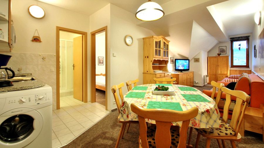 Apartmány Lux mají navíc elektrický vysoušeč lyžařských bot, DVD přehrávač (DVD k dispozici), velký televizor, pračku.