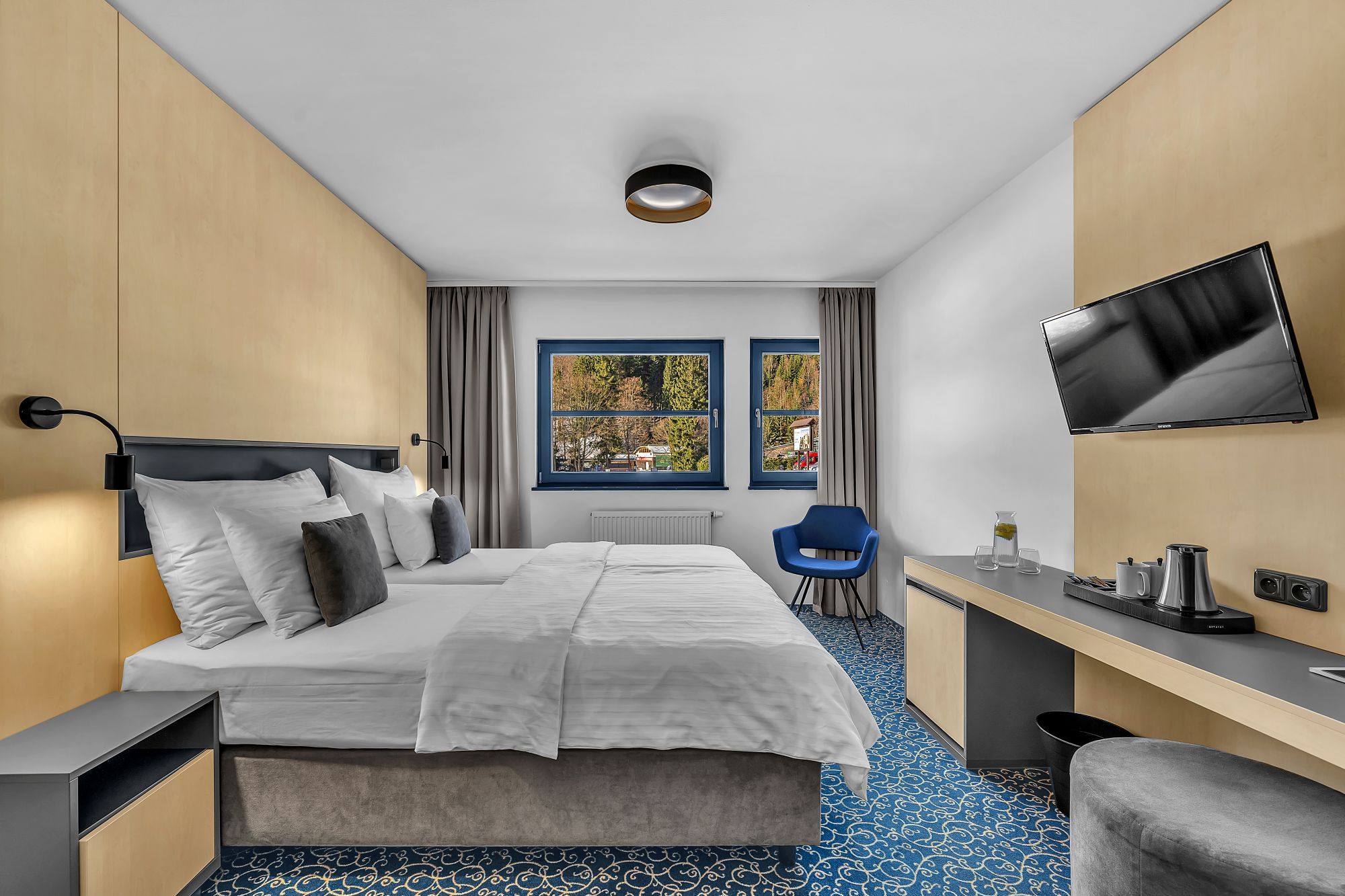 Resort nabízí dvoulůžkové pokoje s možností jedné nebo dvou přistýlek. Pokoje jsou vybaveny LED televizí se satelitními program, ledničkou, Wi-Fi, trezorem, coffee setem, koupelnou se sprchou, vysoušečem vlasů a kosmetickým balíčkem.
