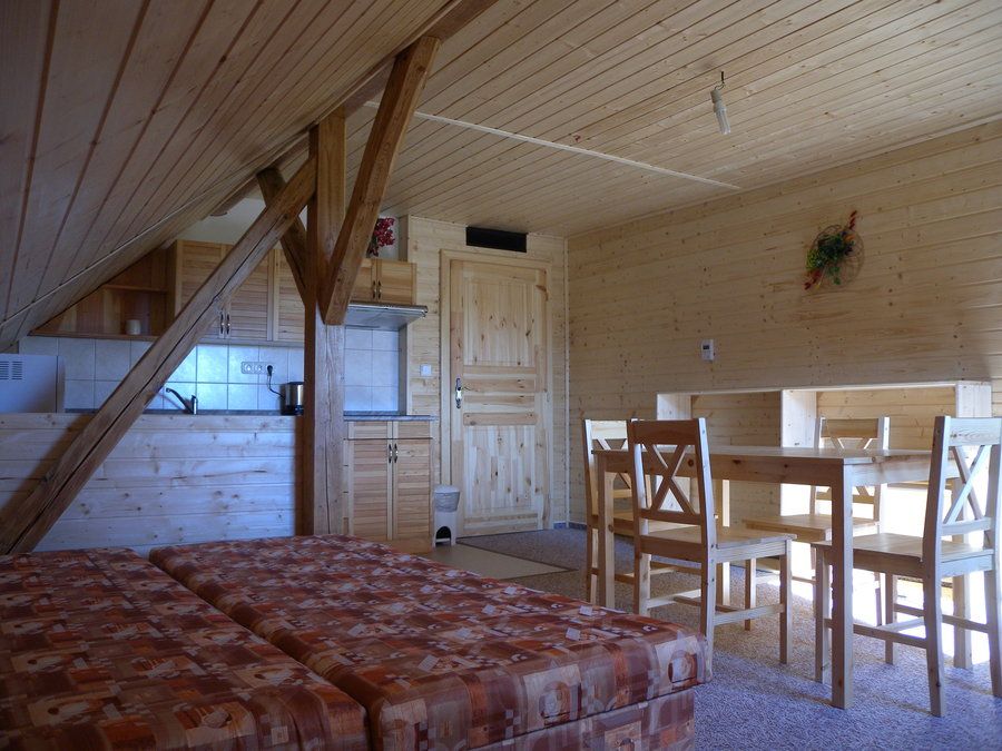 Zcela nový apartmán (rustikální provedení) je umístěn v prvním patře v objektu ve středu areálu. Parkování je možné přímo u objektu.